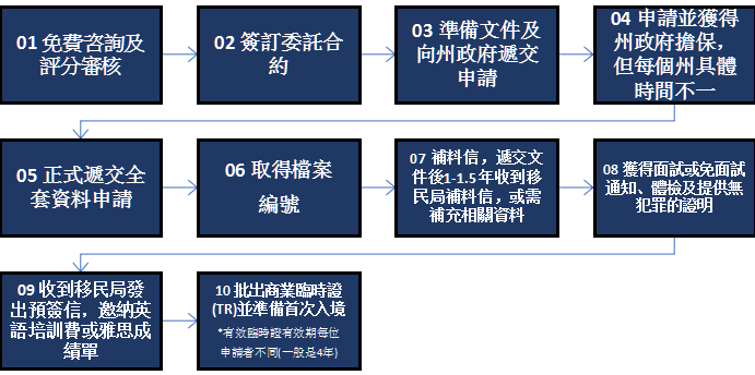 -在澳洲的公司淨資產最少HK$1,064,697 -在澳洲的個人及公司淨資產最少HK$3,193,863 -聘請2名全職當地員工 (只需合符其中2項條件) |